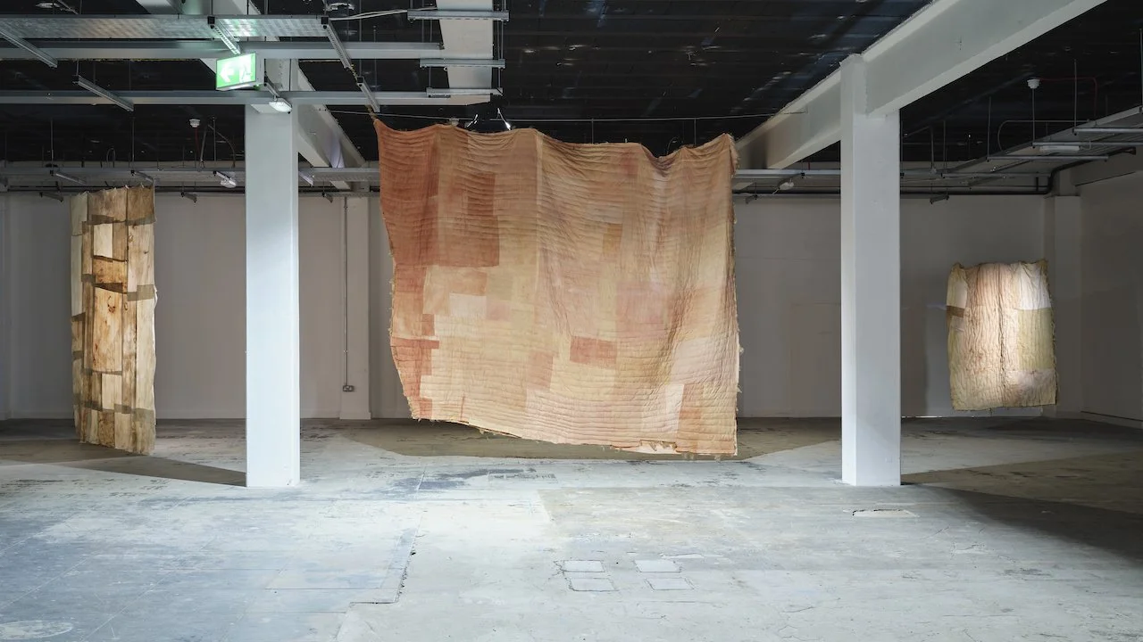 Image: Installation view of Postomia, Pisagua Blanket, and Three Sister by Jess Zamora-Turner. TULCA 2025. Photo: Ros Kavanagh